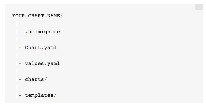 - Chart.yaml: This is where you put all the information about the chart you are packaging. So, for example, your version number, etc. This is where you will put all those details.